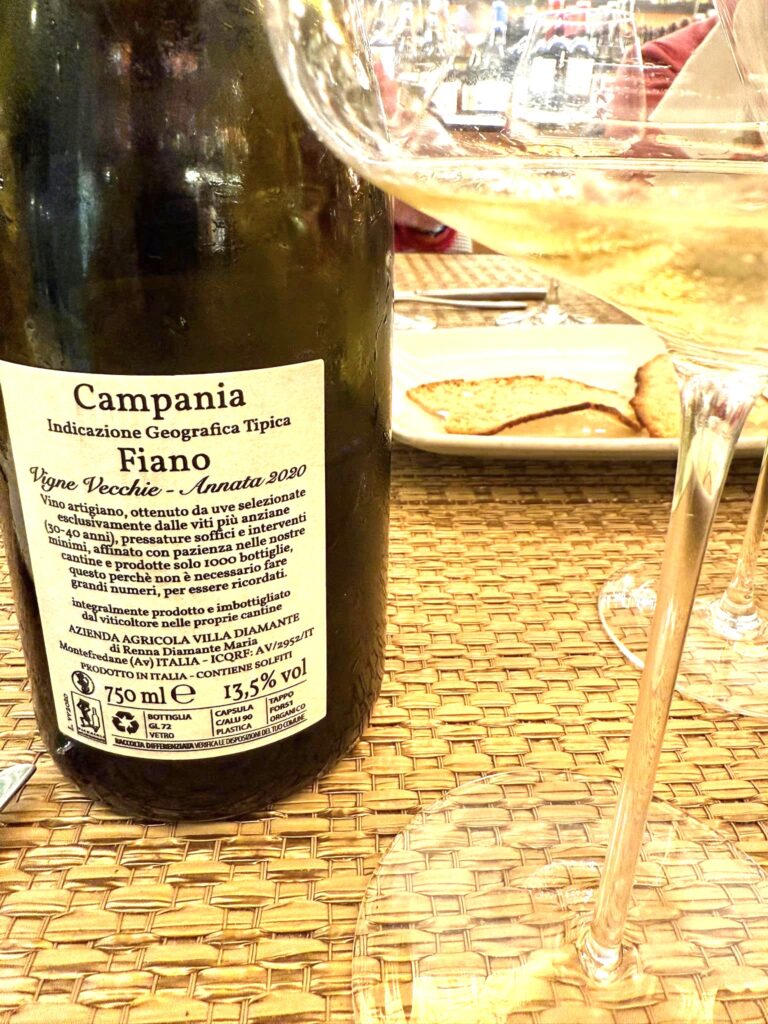 Ecco, il complimento che mi sento di fare alla figlia Serena e alla mamma Diamante è che questo Fiano sembra fatto da lui. A partire dal fatto che non è docg, tanto per citare la polemica da cui nacque il Clos d’Haut che ha anticipato il gusto dei vini naturali degli ultimi anni senza tradire la purezza del Fiano.