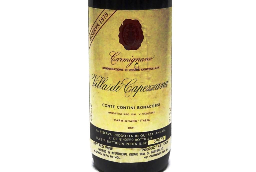 Si tratta del Villa di Capezzana 1979 Riserva, all’epoca Carmignano doc, prodotto dal leggendario e compianto Ugo Contini Bonacossi, personalità straordinaria alla quale mi legano tanti ricordi professionali e non solo e che ha costituito, si può dirlo senza tema di smentita, una delle figure più importanti del vino italiano dal dopoguerra ad oggi.