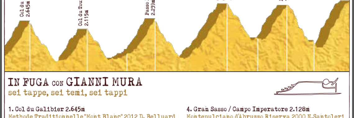 Una cena con Gianni Mura, che ripercorre sei famosissimi colli del Tour e del Giro e ad ognuna di queste tappe salterà un tappo e si berrà un vino della zona (zona allargata diciamo).