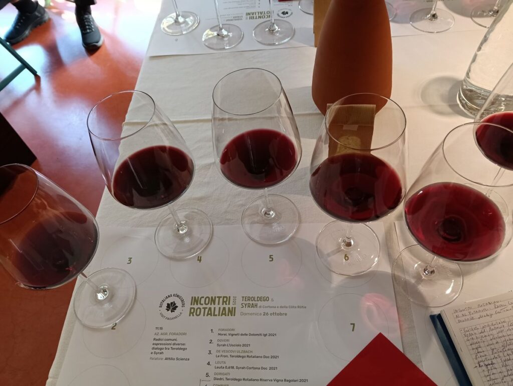 Quest’anno il dialogo si è aperto al Syrah di Cortona e della Côte Rôtie, zone con le quali si condivide un profondo legame con la vite e una tradizione di vini dal carattere deciso e identitario. Non è un caso che il filo conduttore dell’edizione sia stato “Teroldego & Syrah”, due vitigni “cugini” che affondano le origini genetiche in un progenitore comune: il Pinot Nero.