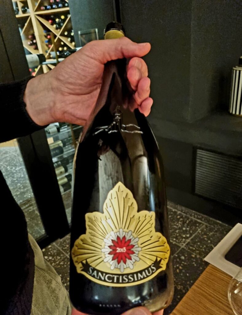 In bocca il Sanctissimus mostra tutta la sua statura. L’attacco è ampio, sostenuto da una freschezza sorprendente per l’annata. La materia è piena, avvolgente, ma sempre guidata da una spina acida precisa, quasi scolpita, che dà ritmo e profondità al sorso. La sapida impronta minerale, cifra dei grandi bianchi altoatesini, accompagna il vino verso un finale lunghissimo, con un’eco salina e lievemente affumicata che resta impressa nella memoria.