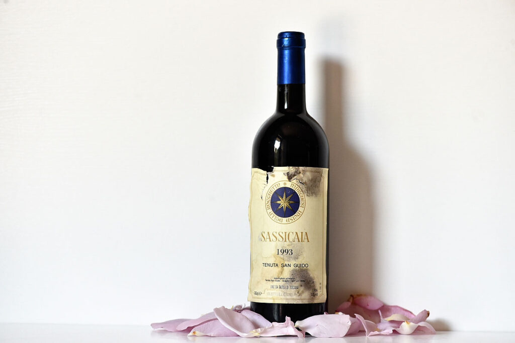 Il Sassicaia, la cui prima annata risale al 1968 (presentata tre anni dopo), ancora oggi ottiene quotazioni elevatissime nel giro di pochi anni dalla sua uscita. Ottenuto da Cabernet sauvignon in prevalenza con una quota di Cabernet franc, fa parte del novero dei cosiddetti “Supertuscan” e stimola frequenti dibattiti sulla sua fama, chi lo adora e chi lo considera sopravvalutato.