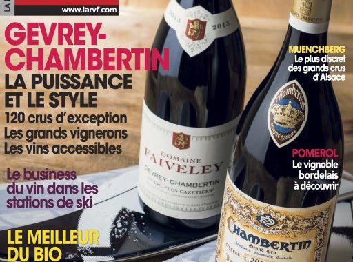 Poi: un  itinerario a Pomerol, i migliori accordi a tavola nel Bergeracois, i ristoranti, i cavistes, i libri, le aste… Nell’inserto centrale, dedicato alle grandi degustazioni: l’”integrale” di Gevrey-Chambertin, annata 2013, la rinascita del Muscadet e i migliori delle sue sottozone, Alsazia, il grand cru Muenchberg, valutare l’evoluzione del vino nel tempo con il metodo della tenuta all’aria.