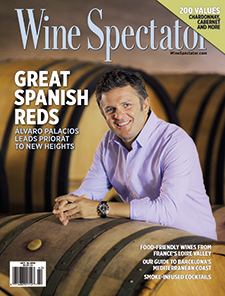 Dopo l’editoriale di Marvin R. Shanken dedicato all’ascesa dei vini spagnoli, le varie rubriche, novità, le pagine degli opinionisti (Laube sul successo dei vini Meiomi, Kramer alla ricerca dei fondamentali) e i cocktails al fumo nella sezione degli Spirits, si comincia con un servizio sui pionieri del Priorat iberico, e naturalmente in primis, Alvaro Palacio.