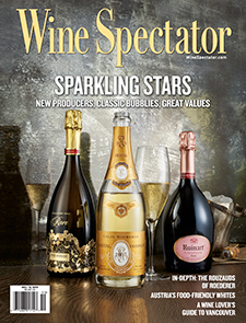 Si avvicina Natale e la copertina è ovviamente dedicata agli sparklings, gli spumanti. Titoli minori alla cucina e ai bianchi d’Austria, alla famiglia Rouzard della Roederer e alla guida a Vancouver.