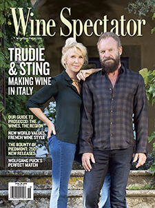Il titolo grande di copertina è per Sting (il famoso cantante rock) e la moglie, l’attrice Trudy Styler, che, nel 1990 acquistarono il podere Il Palagio, in Toscana, dove producono vino. Gli altri titoli riguardano in parte l’Italia (Prosecchi e vini piemontesi), in parte altre regioni e temi (lo stile francese nel Nuovo Mondo e il perfect match di Wofgang Puck ( costolette di agnello & Syrah).Dunque, si comincia come al solito, con l’editoriale di Shanken e Matthews (“Sting and Trudie”),poi ci sono le lettere, le news, le consuete rubriche (si parla di olio d’oliva, di parmigiano, cioccolato a Londra, Charity Auctions del 2015, naturalmente l’abbinamento di Puck, annunciato in copertina, le pagine degli opinionisti (Laube: tutti gli anni il vino migliore, Kramer: parlare di mineralità, Molesworth: quanto è importante l’assaggio alla cieca?).