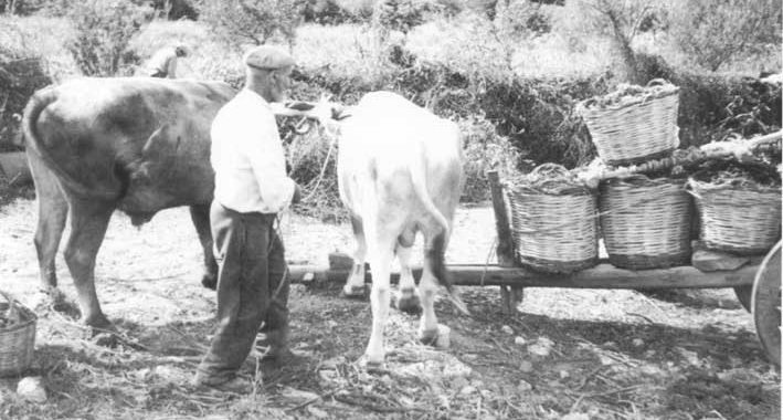 S’andava nella vigna con il carro tirato dai buoi – Vespina e Lambretta si chiamavano – e sopra il carro c’era tutta la batteria dei bigonci per raccogliere l’uva. Quello era il mio posto preferito quando cominciava ad esserci un po’ d’uva. Allora cominciavo a spingere col batacchio (bastone in legno usato per schiacciare l’uva, n.d.r) tutto intagliato e poco dopo cominciavo a vedere quel mosto rosso scuro e con la schiuma e a sentire quell’odore che resta più buono dell’uva, anche quando questa diventa il vino migliore del mondo.
