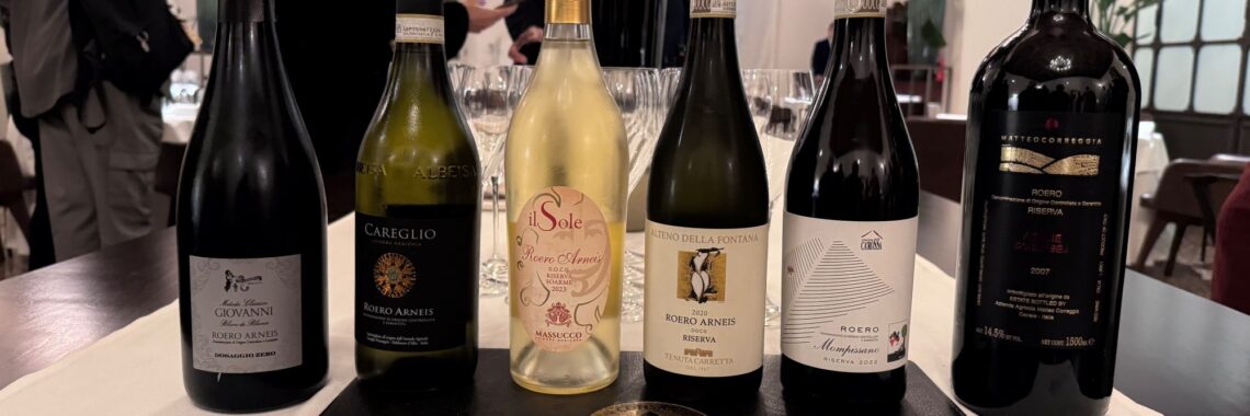 Tra le bottiglie presentate da Zaccaria, spiccano alcune etichette: il Roero Arneis Riserva 2023 Massucco, che dimostra la capacità di invecchiamento del vitigno, e il Roero Arneis Riserva 2020 di Tenuta Carretta, espressione matura e complessa della denominazione. A dire il vero però nessuno dei due, pur molto buoni, è riuscito a sostenere a dovere i piatti abbinati che erano decisamente carichi di sapore.