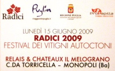 Lo scorso fine settimana lungo (13-14-15 giugno) ho partecipato alla quarta edizione di Radici, la manifestazione che presenta e fa giudicare a due diverse giurie i migliori vini da vitigni autoctoni della Puglia.