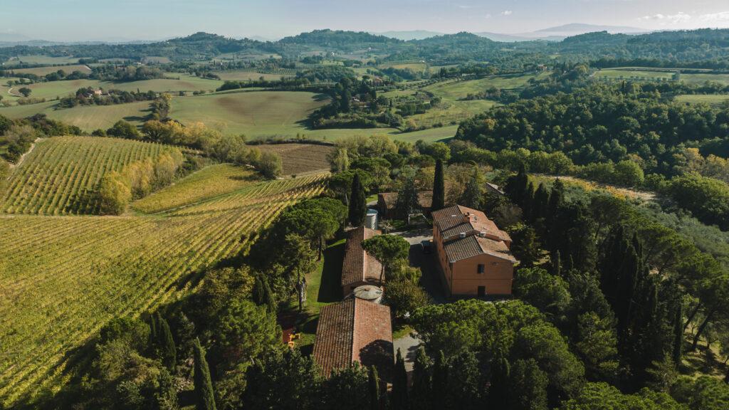 Partiamo dai vini, sconosciuti ai più, noi compresi. L’azienda produce soprattutto due Chianti Colli Senesi (annata e riserva) e alcuni IGT tra cui un ottimo Ciliegiolo. Ma prima dei vini la cantina, semplicissima, con vasche in cemento e in acciaio e delle barrique per la Riserva: nessuna tecnologia particolare anche se in quanto a tecnologia (lo vedremo più avanti) l’azienda potrebbe dare lezioni a tutti. Prima dei vini anche le vigne, nemmeno 20 ettari, non giovanissime (l’azienda venne acquisita nel 1957 ma ha iniziato a produrre seriamente solo dai primi anni ’80 del secolo scorso) dove il sangiovese domina.
