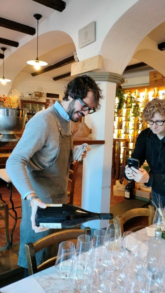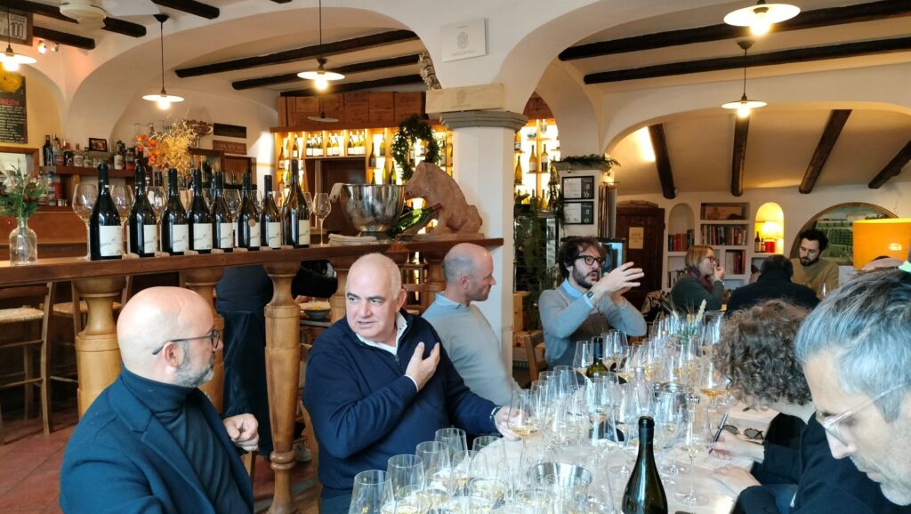 E’ stata una grande degustazione grazie anche ai compagni di viaggio (produttori chiantigiani, colleghi, rivenditori) e soprattutto a Gianmaria che ci ha messo a disposizione l’Enoteca Baldi, luogo che vale la pena di visitare, magari non soffermandosi solo sulle grandi e famose bottiglie presenti ma dando un’occhiata ai frigo dove quelle che io chiamo “bottiglie primarie di zone secondarie di tutto il mondo” fanno capire la passione e la voglia di ricerca che anima il titolare.