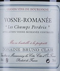 Il Domaine Bruno Clair   (circa 23 ettari di vigna nelle due Côtes, da Marsannay a Savigny-lès-Beaune) produce uno dei villages più fini di Vosne-Romanée da una parcella di sessant’anni di poco meno di un ettaro (su complessivi 4.1) di un lieu-dit,  Les Champs Perdrix, che confina con ben due Grand cru, La Grande Rue e nientemeno che La Tâche.